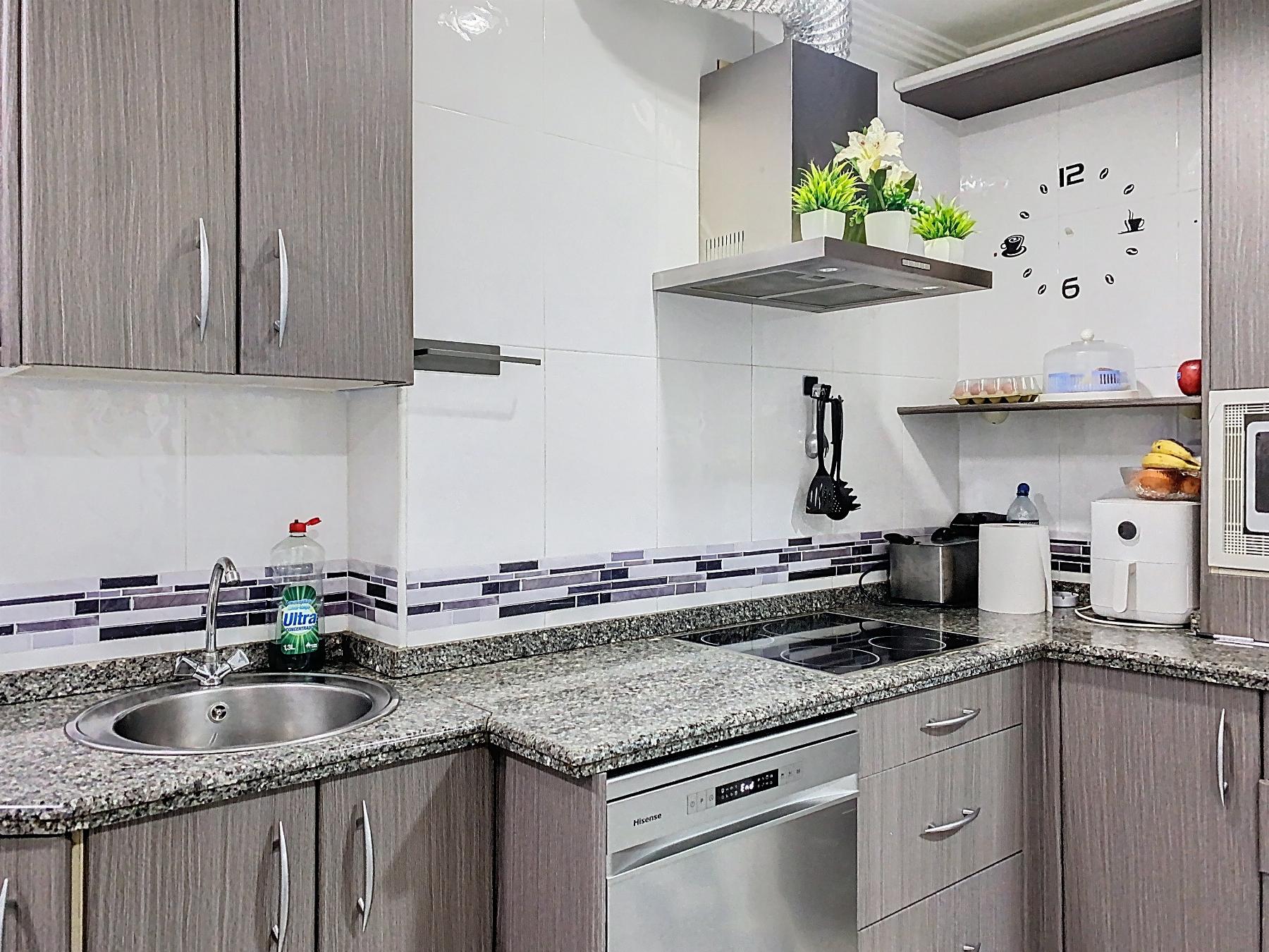 En la Planta baja Encontrarás un Local amplio totalmente alicatado con aire acondicionado, Una Cocina amueblada abierta al salón Y un Aseo práctico debajo de la escalera, Ideal para el día a día.